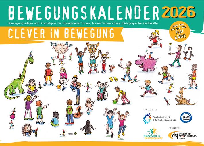 Der neue Bewegungskalender der Deutschen Sportjugend (dsj) für das Jahr 2026 unterstützt Trainer*innen, Übungsleiter*innen und pädagogische Fachkräfte dabei, die exekutiven Funktionen und die Selbstregulation von Kindern kindgerecht und bewegt systematisch zu fördern. Mit insgesamt 15 abwechslungsreichen Spielideen können zentrale Gehirnfunktionen fortlaufend aktiviert und trainiert werden. Unterschiedliche Schwierigkeitsstufen sorgen dafür, dass die Anforderungen behutsam gesteigert werden können – für eine kognitive Entwicklung über längere Zeit hinweg. Ergänzt wird das Praxismaterial durch verständlich aufbereitetes Basiswissen zu exekutiven Funktionen und deren Bedeutung im kindlichen Alltag.