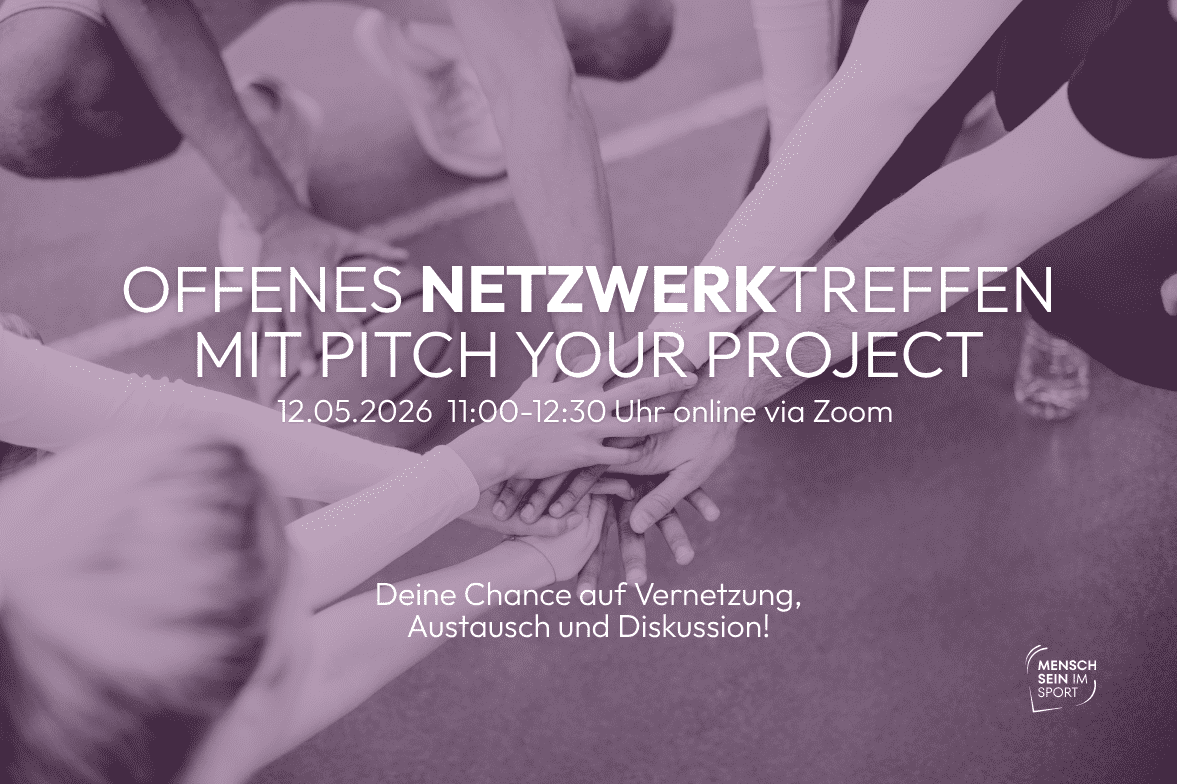 Die Initiative „Mensch sein im Sport“ lädt zum nächsten offenen Netzwerktreffen am Dienstag, den 12.05.2026 von 11:00-12:30 Uhr via Zoom ein.