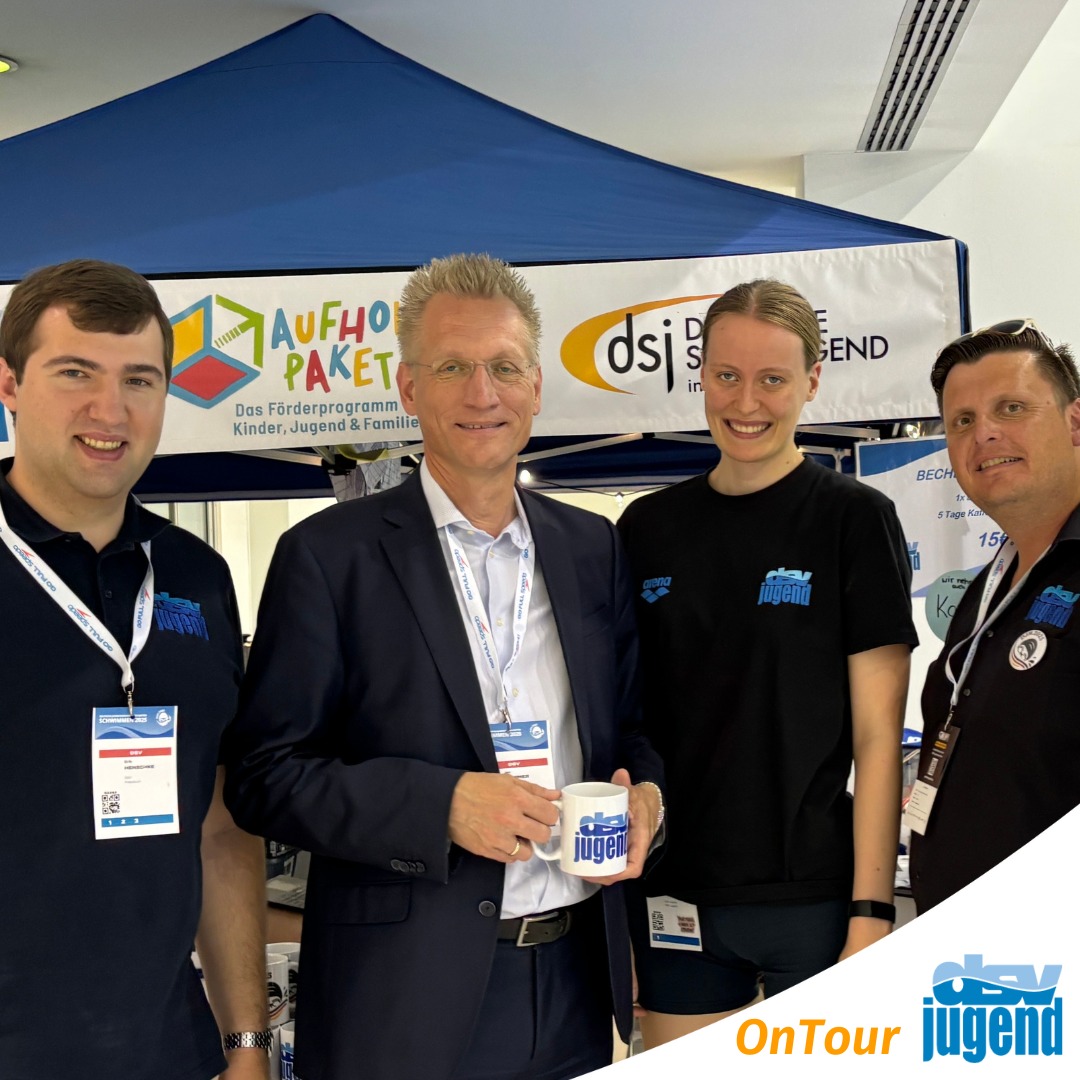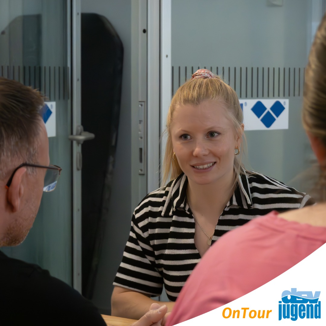 L. Götz und J. Lagemann, Vorstandsmitglieder der @deutschesportjugend informierten sich über die Herausforderungen in der Engagementförderung sowie laufende Projekte wie die Schwimmabzeichentage.