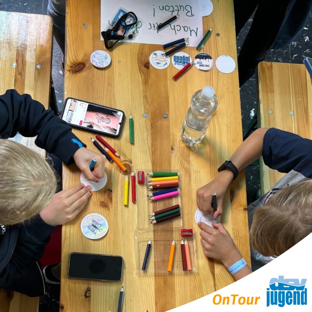 Und während des Dauerregens am Samstag und Sonntag gab es als Alternative ein Kreativangebot im Foyer des Dortmunder Südbades. Ob Veranstaltungslogo, Namensschild oder Glücksbringer, die Athlet*innen gestalteten zahlreiche individuelle Buttons und haben so eine kleine Erinnerung an ihre zumeist erste Deutsche Meisterschaft.