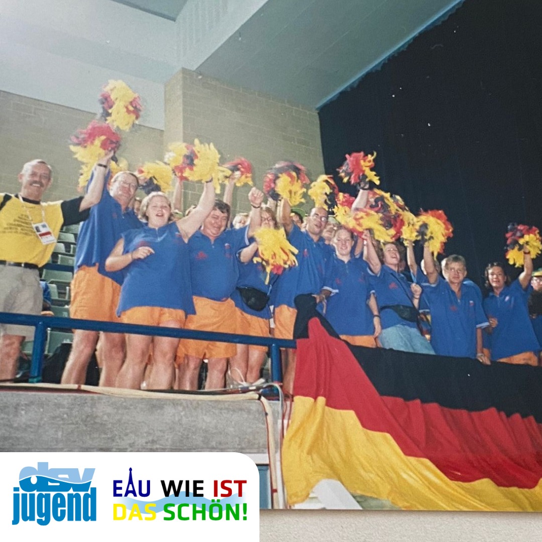 Das ist Vanessa (18 Jahre). Bereits ihre Mutter Tanja war 1998 in einem dsv-jugend-Camp zur Weltmeisterschaft dabei. Insgesamt 3 Wochen verbrachten die Teilnehmenden damals in Singapur und Perth. Sie berichtet „Wir sind erst nach Singapur geflogen, haben da Silvester gefeiert und uns die Stadt angesehen und sind dann weitergeflogen. Wir hatten Dauerkarten für alles in Perth und haben jeden Tag Vor- und Endläufe im Schwimmen geguckt und viele Ausflüge gemacht. Wasserspringen haben wir auch 2-3x in den Finalläufen gesehen. Das war für mich eine unvergessliche Reise.“ Genauso wie das Erlebnis in Paris nun für ihre Tochter. Und wer weiß vielleicht begrüßen wir in 30 Jahren dann die nächste Generation bei der dsv-jugend.