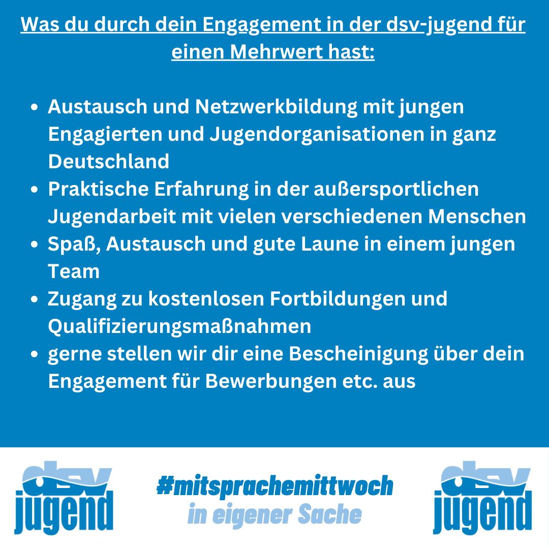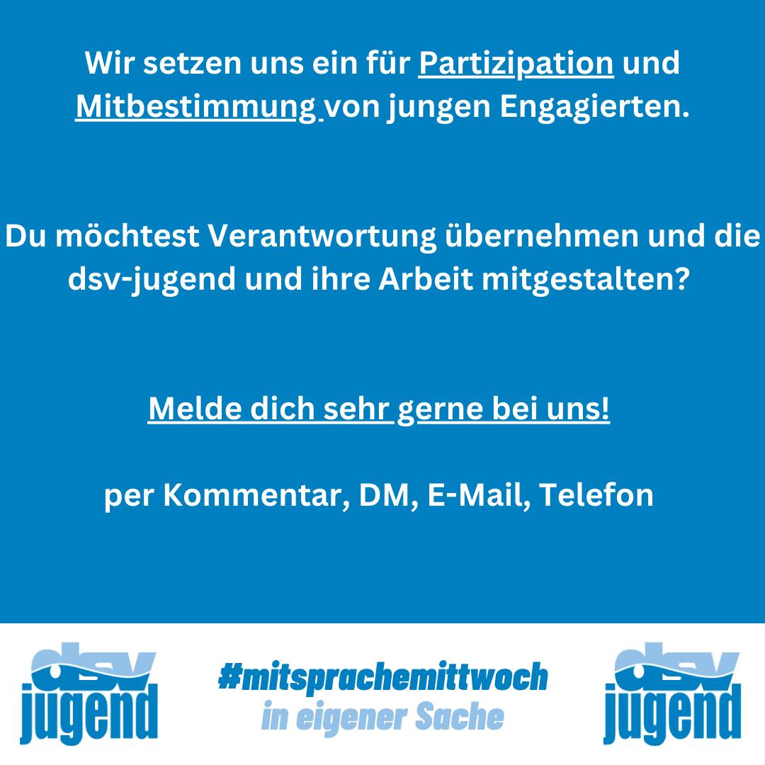 Den heutigen #mitsprachemittwoch möchten wir nutzen, um einmal die vielfältigen Möglichkeiten der Mitsprache und Mitgestaltung in der dsv-jugend zu präsentieren.