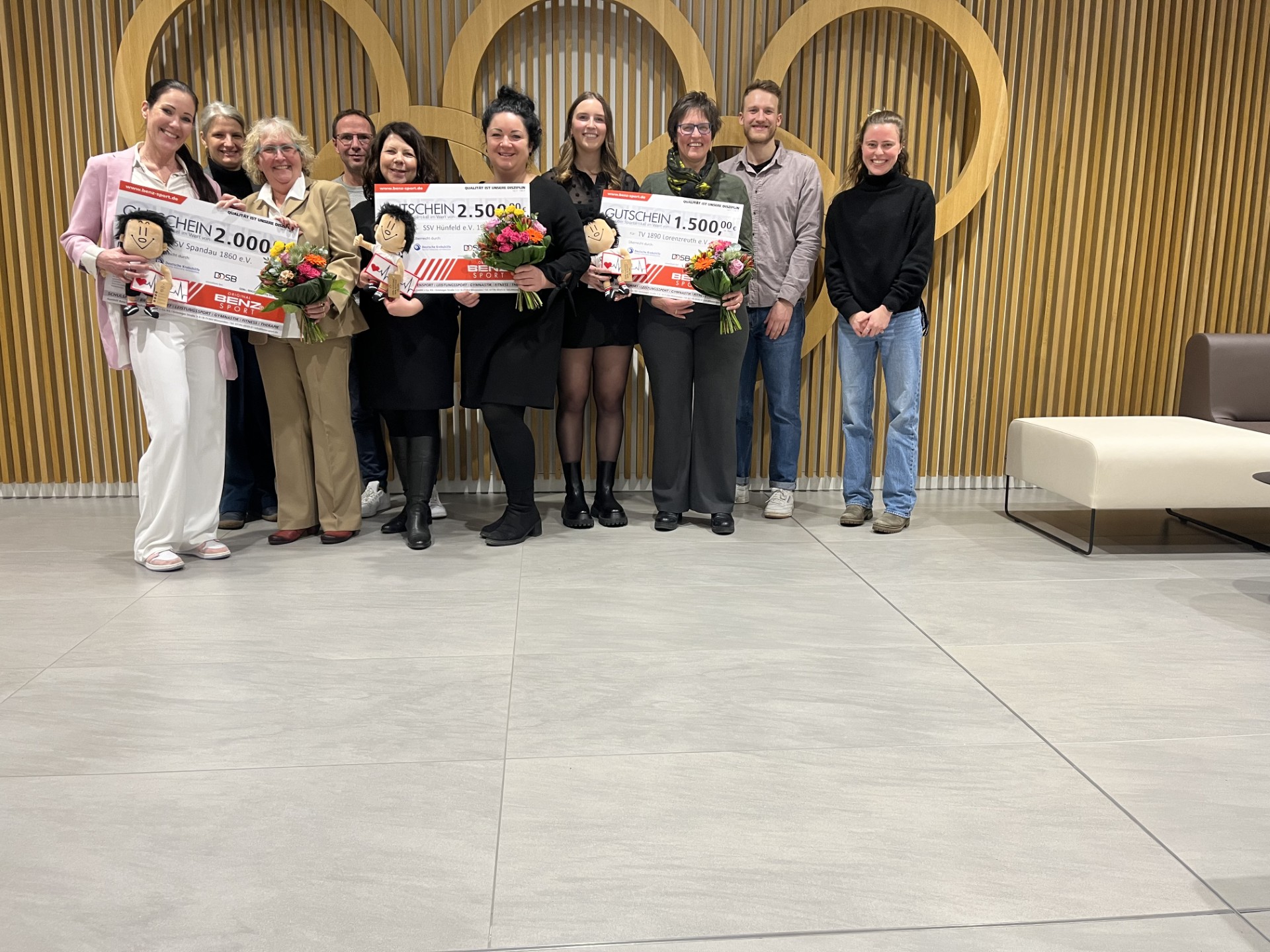 Im Rahmen einer Preisverleihung im Haus des Sports in der Otto-Fleck-Schneise wurden die drei Gewinnervereine des Wettbewerbs „Bewegung gegen Krebs“ 2024 geehrt. Die Sportvereine der prämierten Aktionstage nahmen persönlich ihre Auszeichnungen entgegen. Dabei wurden Gutscheine des Sportgeräteherstellers BENZ Sport von Deutscher Krebshilfe, DOSB und DTB – den Initiatoren des Wettbewerbs – an die Sportvereine übergeben.