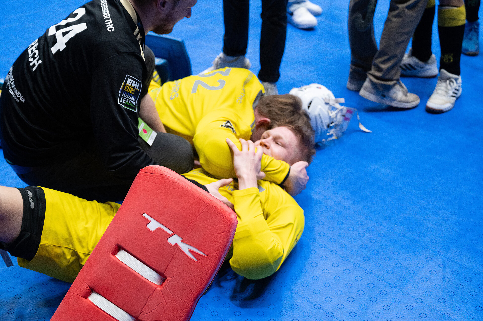 Sport ist manchmal brutal. Im Endspiel um die deutsche Meisterschaft im Hallenhockey ließ sich Joshua Onyekwue Nnaji am vergangenen Sonntag in der Frankfurter Süwag Energie Arena schon als Matchwinner feiern. Im Penaltyschießen gegen den Hamburger Vertreter Harvestehuder THC hatte der Torhüter des Crefelder HTC den vermeintlich letzten Versuch des Gegners pariert und sich danach im Überschwang der Gefühle die Schutzmaske vom Gesicht gerissen. Doch weil der 22-Jährige nach Meinung der Schiedsrichter den Ball regelwidrig mit der runden Seite des Schlägers aus der Gefahrenzone befördert hatte, gab es Siebenmeter für die Hamburger. Die nutzten die unverhoffte Chance – und entschieden kurz darauf das Penaltyschießen für sich. Während Pechvogel Joshua getröstet werden musste, war HTHC-Torhüter Jasper Ditzer der Mann, der von seinen Teamkollegen unter einer Jubeltraube begraben wurde.