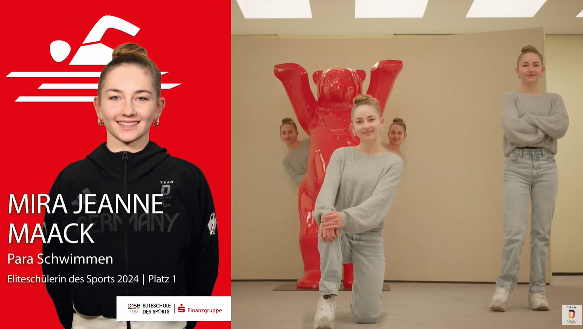 Über den Titel „Eliteschülerin des Sports 2024“ durfte sich die Para-Schwimmerin Mira Jeanne Maack (21, Berlin) freuen, die im Sommer bei den Paralympischen Spielen in Paris die Bronzemedaille über 100 m Rücken gewann.