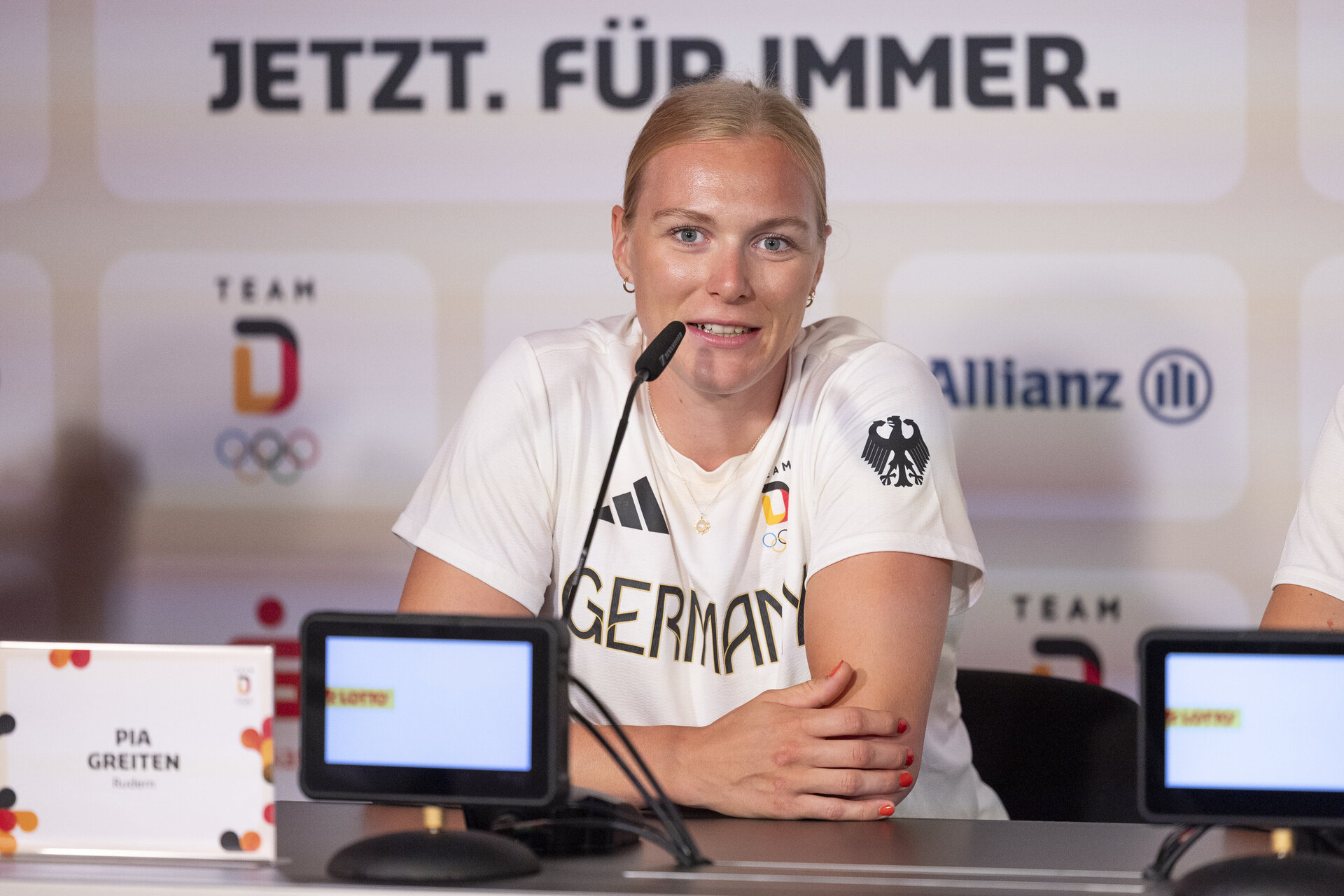 Als am vergangenen Sonntagmittag im DFB-Campus in Frankfurt am Main die Athlet*innenvollversammlung des Deutschen Olympischen Sportbundes (DOSB) ihre Vertretung wählte, war Pia Greiten nur digital zugeschaltet. Weil die 28-Jährige vom Osnabrücker Ruder-Verein aktuell in Warendorf einen Bundeswehrlehrgang absolviert, war ihr die Teilnahme vor Ort nicht möglich. Die Vorsitzendenwahl musste deshalb am Montagnachmittag ebenfalls digital abgehalten werden. Aber nachdem Pia Greiten, die bei den Olympischen Spielen in Paris Bronze mit dem Doppelvierer gewann und in dieser Saison als einziges Mitglied des Paris-Quartetts im Skull-Paradeboot verblieben war, vom neunköpfigen Gremium als Nachfolgerin von Beachvolleyball-Ass Karla Borger (36/Stuttgart) bestätigt wurde, stand sie dem DOSB in ihrem ersten Interview in neuer Funktion Rede und Antwort.