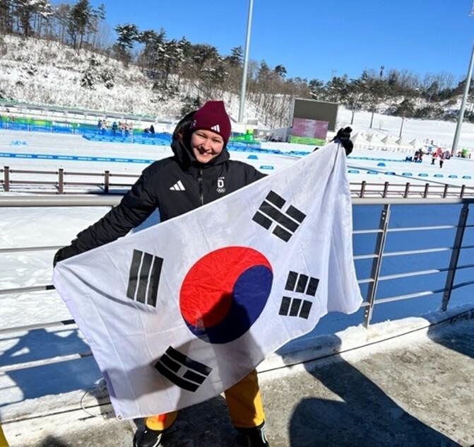 Nach der Bewerbungsphase im Sommer 2023 traf ich mich im September mit 29 anderen jungen Erwachsenen aus ganz Deutschland aus den verschiedensten Sportarten in Mannheim zu einem Vorbereitungstreffen. Dort erhielten wir erste Einblicke in die koreanische Sprache und Kultur und konnten uns natürlich gegenseitig etwas kennenlernen. Am 16.01. reisten wir schließlich nach Frankfurt, um am nächsten Tag nach Seoul zu fliegen – dachten wir zumindest. Aufgrund von Eisregen durften wir jedoch noch eine weitere Nacht in Frankfurt verbringen, bevor es dann einen Tag später nach Korea ging. Dort angekommen lernten und übten wir noch etwas Koreanisch, bevor wir nach Gangwon in den Osten des Landes weiterfuhren. Hier blieben wir für fünf ganze Tage, in denen neben den Wettkampfbesuchen Workshops und Fragerunden mit Personen wie etwa dem IOC-Funktionär Christian Klaue, dem DOSB-Vorstandsvorsitzenden Torsten Burmester, oder den Athlete Role Models Vanessa Hinz und Sascha Benecken auf dem Programm standen. Als Athlete Role Models standen die ehemaligen olympischen Medaillengewinnenden als Ansprechpartner*in für die jungen Athlet*innen bei den Olympischen Jugendwinterspielen zur Verfügung.