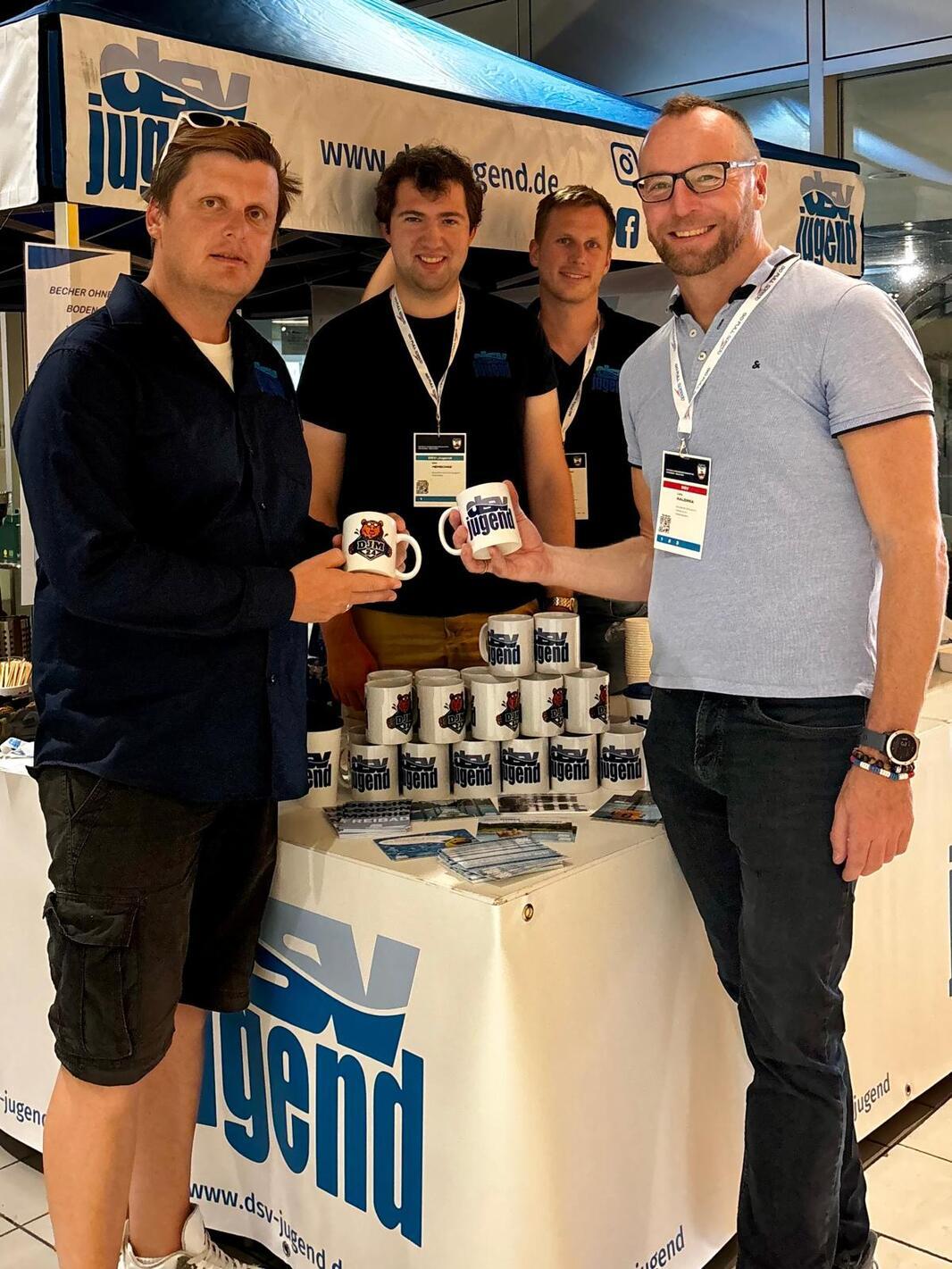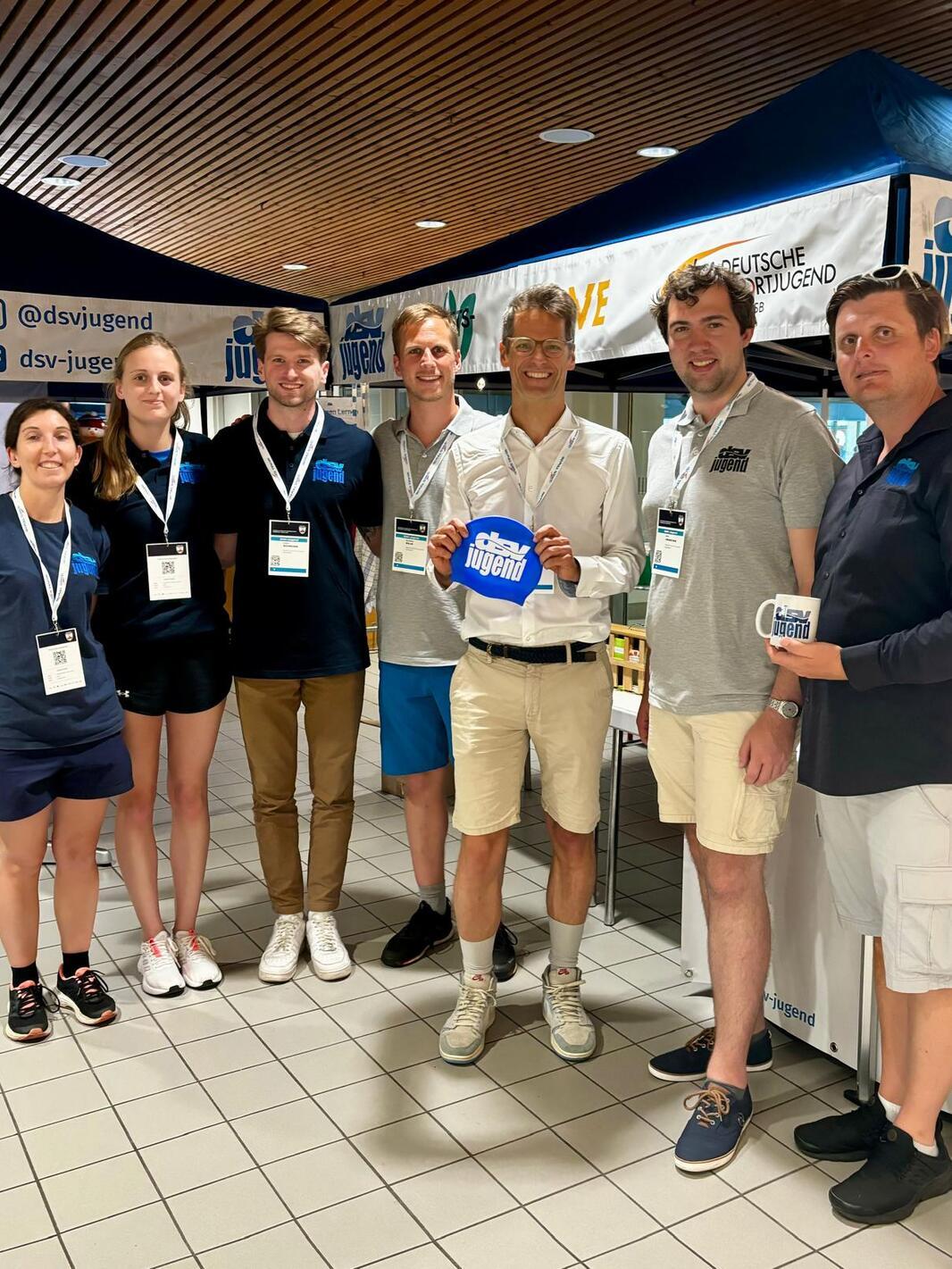 Ebenfalls an unserem Stand zu Besuch waren Lars Kalenka aus dem neu gewählten DSV-Präsidium, Dr. Steffen Rülke, Abteilungsleiter Sport im BMI und Julian Lagemann, Vorstandsmitglied der Deutschen Sportjugend. Alle waren sich einig, dass die Jugend(verbands)arbeit im Sport eine wichtige Säule für die Förderung junger Menschen sowohl im Hinblick auf die sportliche Talententwicklung, aber insbesondere auch zur Persönlichkeitsentwicklung sowie Engagement- und Demokratieförderung darstellt.